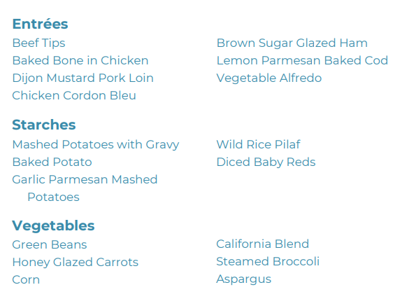 We invite you to join us for our upcoming Taste Test at Rib River on November 5th. Each ticket is $20. For wedding couples with booked events or caterings, this fee will be credited onto your event’s final invoice. Each additional guest you bring will not be credited or refunded for their ticket. Please select 3 meats, 3 starches and 3 vegetables per guest attending from the menu selection options. On each place setting for your reservation will be a menu of the food items selected.